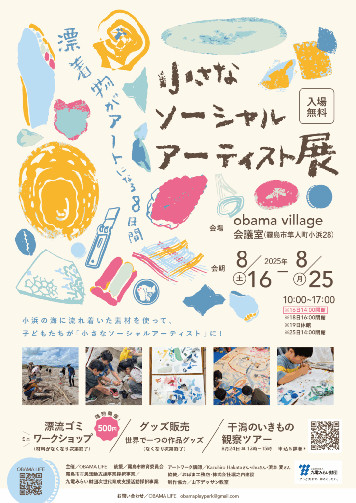 先日の記録的大雨の被害もあり、一度は延期も考えましたがobama village村長さんから、「このような時だからこそ、ぜひ開催して盛り上げてほしい」というお言葉をいただき、小さなソーシャルアーティスト展開催の決断に至りました。
